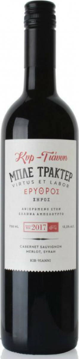 Το Μπλε Τρακτέρ έχει πλούσιο, βαθύ ρουμπινί χρώμα με μπλε ανταύγειες. Στη μύτη διακρίνονται αρώματα από δαμάσκηνα, πιπεριά και βανίλια. Στο στόμα είναι ξηρό με ισορροπημένη οξύτητα και απαλές τανίνες, γεμάτο σώμα και χαρακτηριστικά από μαύρα φρούτα, πικάντικα και γλυκά μπαχαρικά και κάποια βοτανικά στοιχεία.